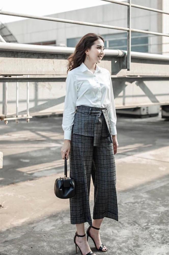 Không phải chân váy pastel như Mi So, Mai Ngọc lại thường kết thân với dáng quần culottes mỗi lần diện áo sơ mi trắng.