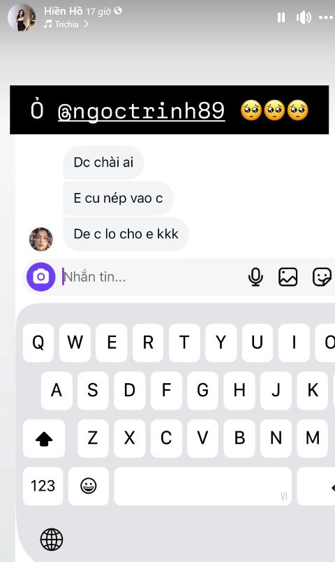 Trên trang cá nhân mới đây, Hiền Hồ chia sẻ đoạn tin nhắn gây chú ý. Theo đó, nội dung là cuộc trò chuyện của nữ ca sĩ và Ngọc Trinh. Hiền Hồ bày tỏ sự xúc động khi được đàn chị bảo vệ, bao bọc.