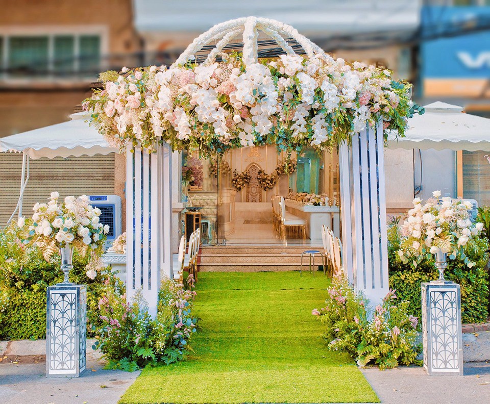 Cổng hoa được kết cầu kỳ và rực rỡ.