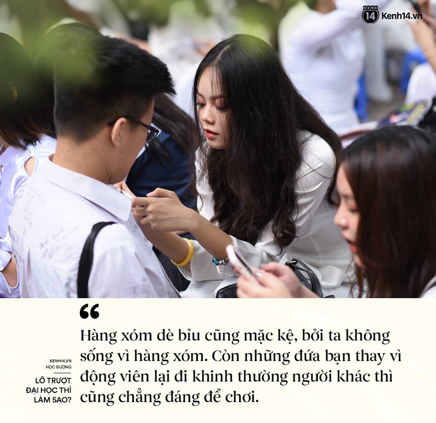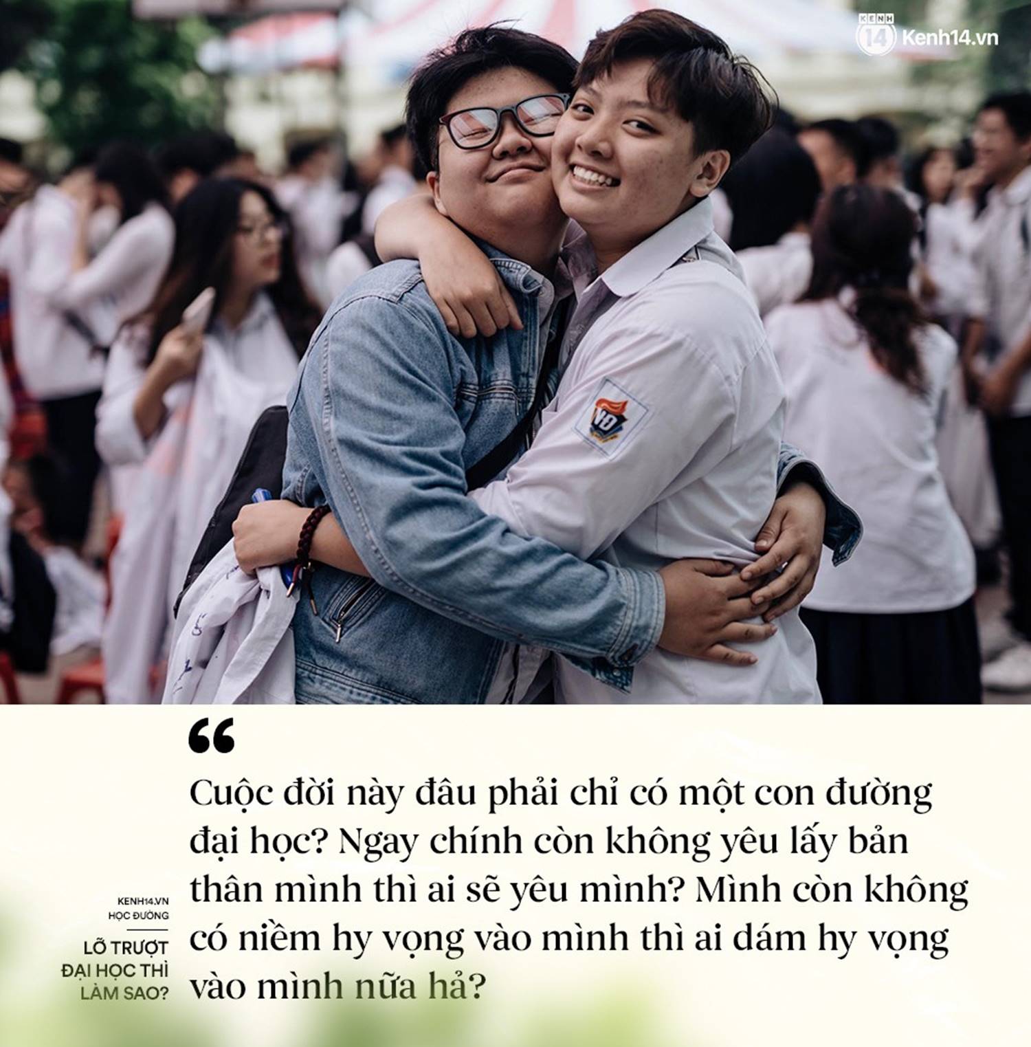Nếu trượt tôi sẽ đứng dậy tìm một con đường để đi. Cuộc đời này đâu phải chỉ có một con đường đại học? Ngay chính còn không yêu lấy bản thân mình thì ai sẽ yêu mình? Mình còn không có niềm hy vọng vào mình thì ai dám hy vọng vào mình nữa hả em?