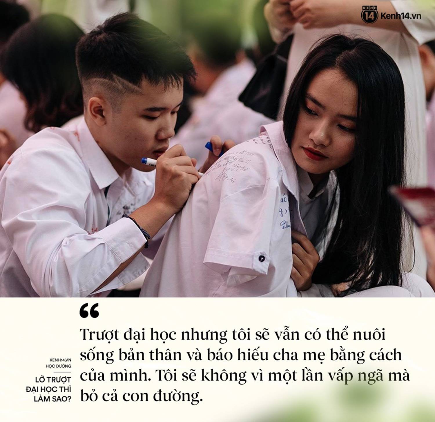 Tôi sẽ chứng minh cho mọi người thấy rằng: Trượt đại học nhưng tôi sẽ vẫn có thể nuôi sống bản thân và báo hiếu cha mẹ bằng cách của mình. Tôi sẽ không vì một lần vấp ngã mà bỏ cả con đường.