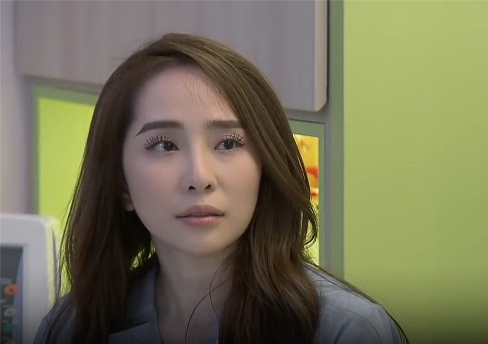 Nếu ai còn bênh rằng người ta vào viện thì ai có dư thời gian để tẩy trang thì cận cảnh nhan sắc ở phân đoạn ngay trước đó của Nhã, khi ăn vạ Vũ đây: tóc rũ rượi,lông mày còn chẳng sắc nét được như trong viện và nhất là lông mi còn "chân phương" chán.
