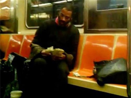 Hillman bị phát hiện đang ngồi đếm một xấp tiền trên tàu điện ngầm. Ảnh: NYPost |