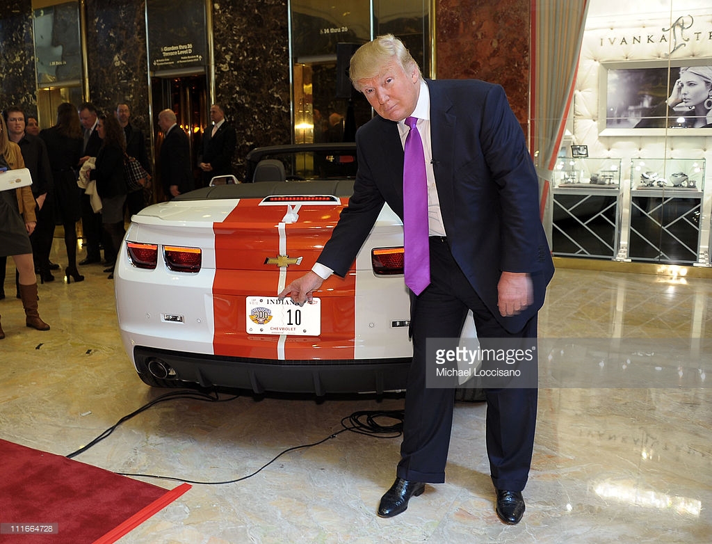 Năm 2011, Donald Trump gây ồn ào khi khi liên tục chụp hình cùng chiếc xe thể thao Chevrolet Camaro Pace Car dành riêng cho đường đua Indianapolis 500. Phiên bản Camaro Pace Car sở hữu động cơ V8, dung tích 6.2L kết hợp hộp số tự động 6 cấp, giúp sản sinh công suất tối đa 426 mã lực. Ngoại thất chiếc xe nổi bật với màu sơn trắng, trên cánh cửa có in dòng chữ “Official Pace Car” và dải sọc cam chạy từ đầu, qua nắp ca-pô đến phía sau. Nội thất với ghế ngồi bọc da màu cam.