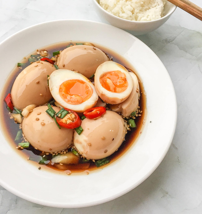 - Đổ hỗn hợp nước tương vào sao cho ngập trứng, ngâm khoảng 6 tiếng để trứng ngấm gia vị là có thể ăn được.