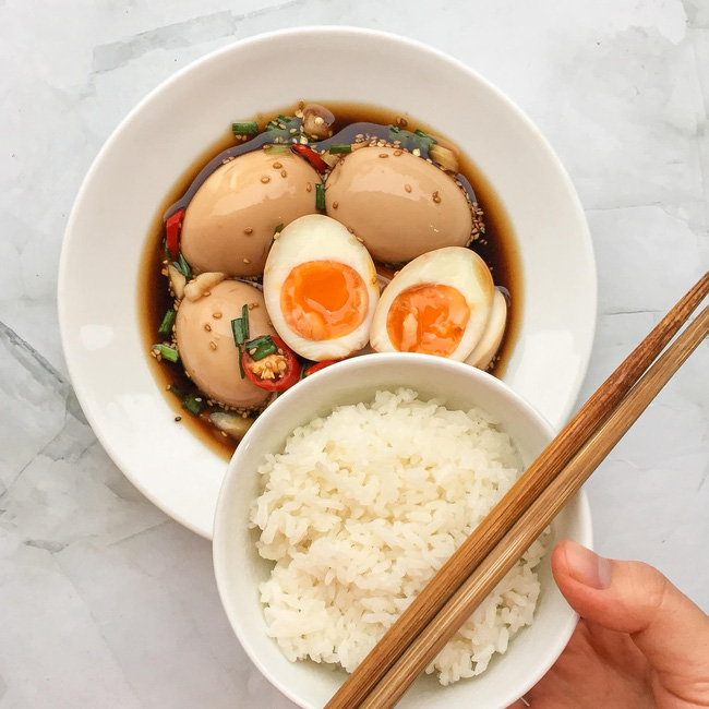 Trứng sau khi ngâm đã ngấm gia vị, lấy trứng ra, dùng với cơm trắng, bánh mì hay mì sợi đều được. Trứng ngâm tương có màu nâu vàng đẹp mắt, xẻ đôi quả trứng thấy lòng trắng vừa chín tới, giòn mềm, lòng đỏ dẻo sệt, nước tương sóng sánh, thơm ngon.