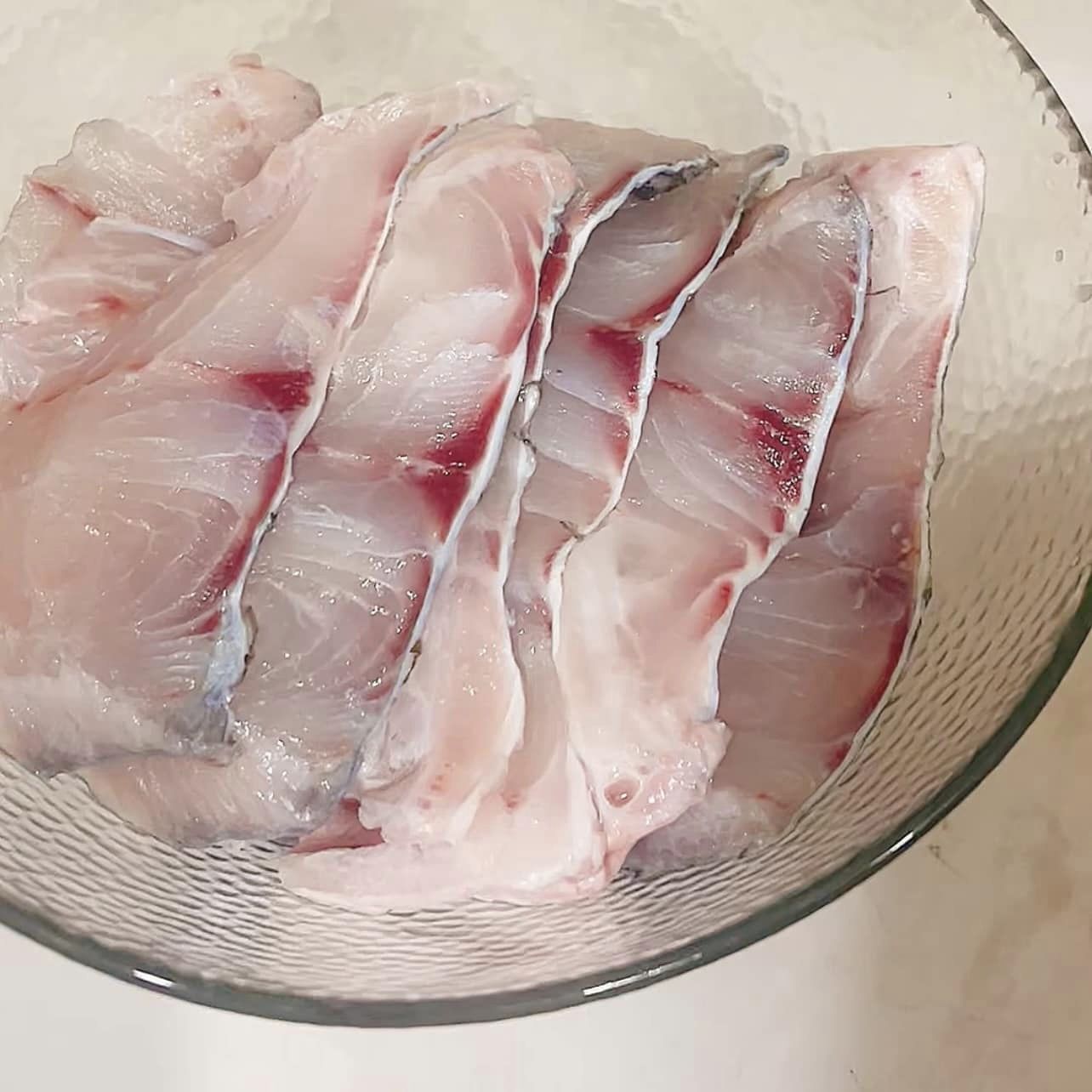 Cá lọc xương thái vát miếng dày 2-3 cm. Thái mỏng quá cá chiên lên sẽ bị nát/ khô