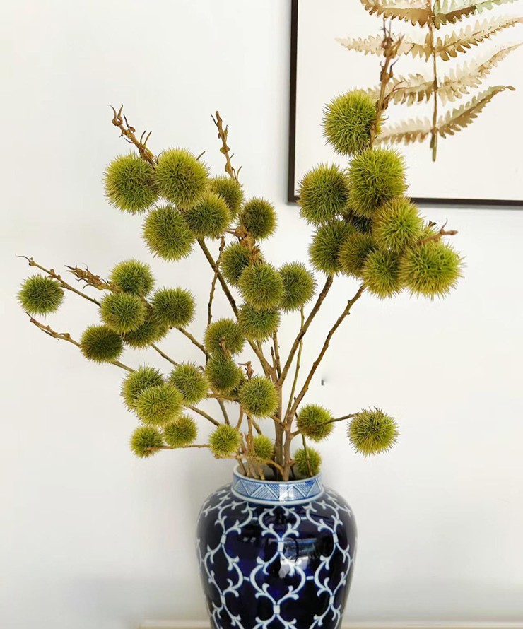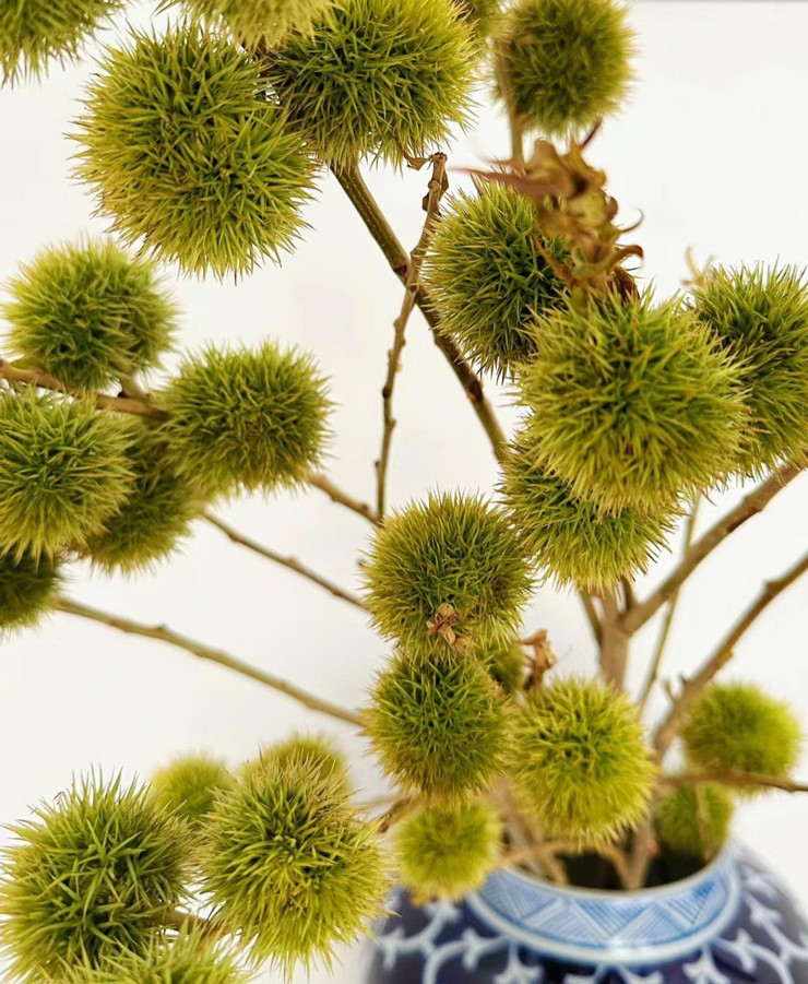 Những quả hạt dẻ màu xanh nhìn như các quả cầu nhỏ xinh nên nhiều chị em cũng muốn mua thử về cắm chơi. Theo kinh nghiệm của chị, cành quả nào cũng cần phải thay nước thường xuyên để cành được tươi lâu hơn. Đặc biệt, bình cắm cần để nơi mát mẻ để cành được tươi lâu hơn.