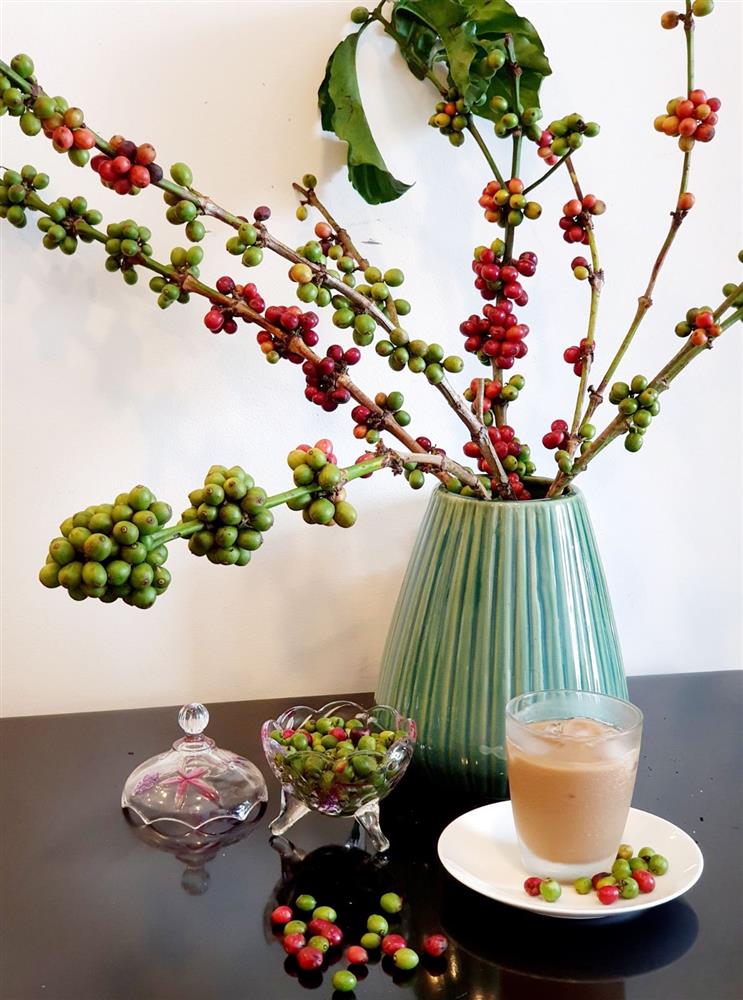 Sau khi cắm, quả cà phê sẽ chín dần theo từng ngày, trông rất đẹp mắt.