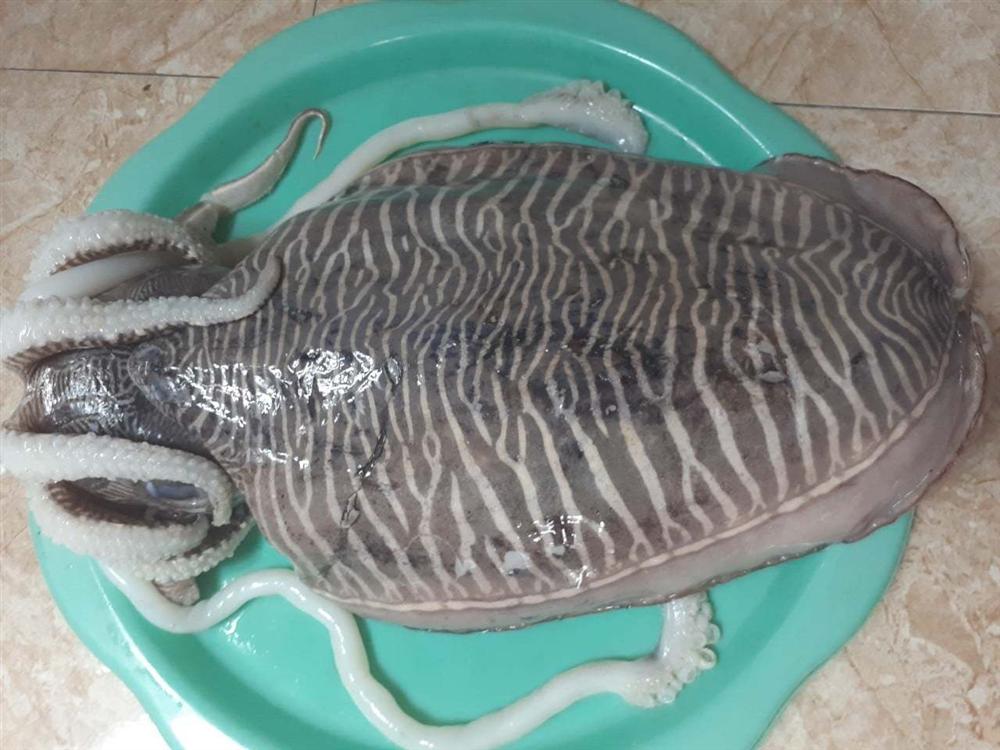 Thời gian này, bên cạnh các loại hải sản khác, chị Huyền thường xuyên bán mực mai. Mực mai này là hàng tươi được ủ đá trên thuyền ngay khi câu lên, mỗi con nặng từ gần 1kg đến 2kg. Người sành ăn mực có thể dễ dàng phân biệt mực mai chỉ bằng hình thức bên ngoài.