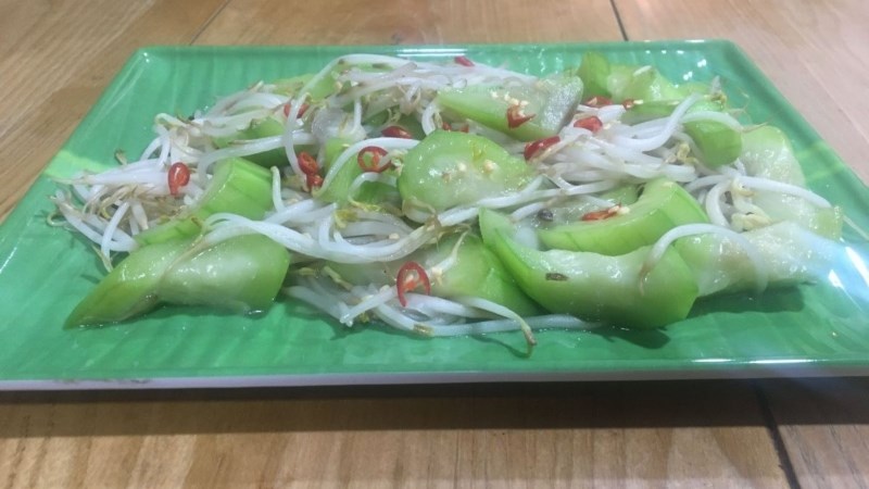 Sau khi sơ chế các nguyên liệu sạch sẽ thì đem xào với nhau cùng hành tím để làm dậy mùi hương hơn nữa. Thành phẩm nhận được sẽ là sự ngon ngọt từ mướp quyện với cái giòn đặc trưng của giá đỗ.