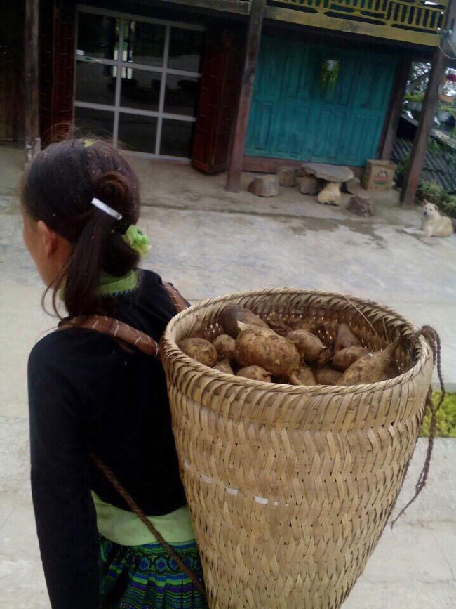 Người dân gùi Sâm khoai xuống chợ bán.