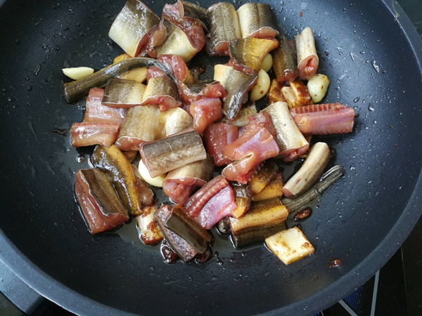 Bước 3: Đun nóng dầu trong chảo, sau đó cho tỏi thái lát (hoặc để nguyên tép cũng được), gừng vào xào cho đến khi dậy mùi thơm. Bạn xào nhanh trong khoảng 1 phút thì cho lươn vào, đảo đều. Tiếp đó bạn cho rượu nấu ăn và nêm thêm chút gia vị cho vừa ăn.