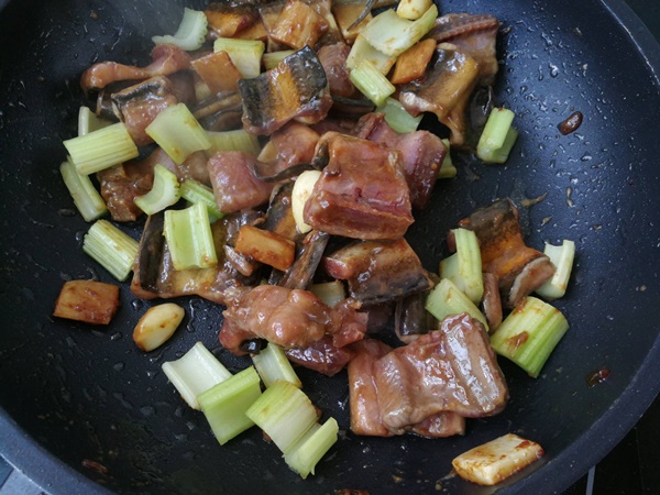 Bước 4: Tiếp đó bạn cho cần tây vào và xào trên lửa lớn. Khi cần tây chuyển màu hơi trong thì bạn cho ớt chuông vàng và hành tây cắt khối vào, xào đều. Khi tất cả các nguyên liệu chín thì bạn rắc hành baro xắt nhỏ vào, đảo đều rồi tắt bếp. Cho lươn xào rau củ tươi ra đĩa là có thể thưởng thức cùng cơm nóng.