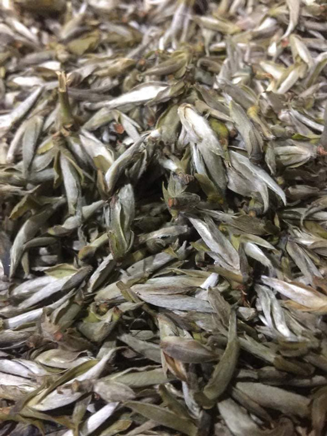 Những búp chè non được người dân hái về để chế biến Bạch trà