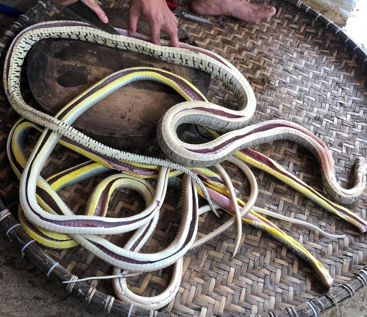 Cũng bán rắn mấy năm nay, anh Lê Duy Trường (Đông Anh, Hà Nội) cho biết anh thường đi mua rắn ráo về bán lại. “Có ngày khách đặt mua hơn chục cân, cũng tùy từng hôm, có hôm khách đặt mua vài cân. Rắn ráo này không có độc, khách đặt mua ăn rất nhiều”, anh nói.