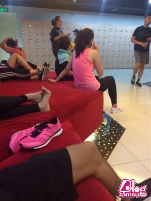 Thân hình khá đầy đặn, đẫy đà của của Hoa hậu (áo hồng) trong phòng tập gym hồi mới đăng quang.