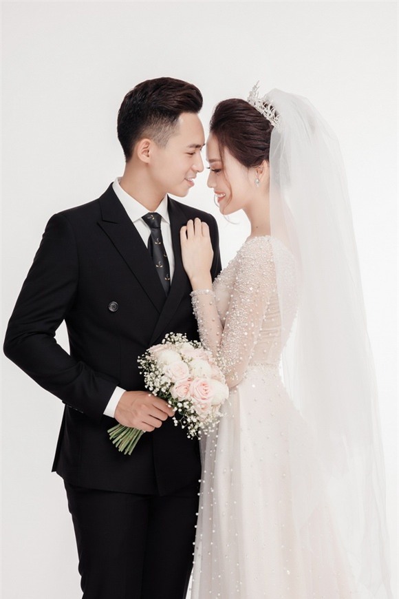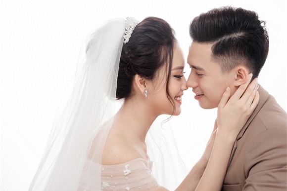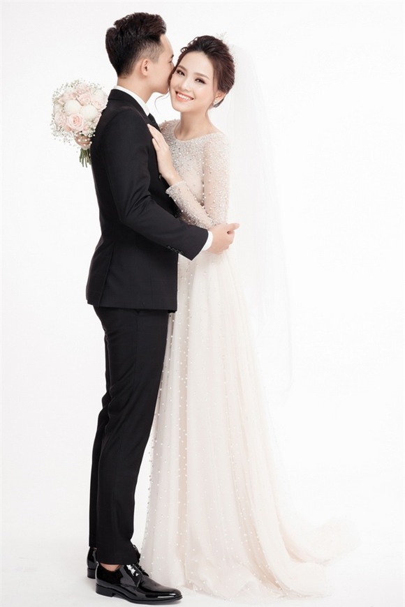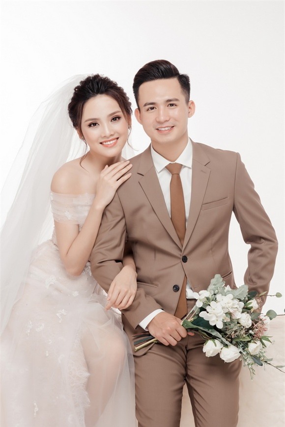 Trong khi chú rể Trung Hiếu diện vest lịch lãm thì cô dâu Tố Như xinh đẹp với váy trắng tinh khôi. Cả hai nở nụ cười hạnh phúc khi trình làng loạt ảnh cưới đẹp mộng mơ.