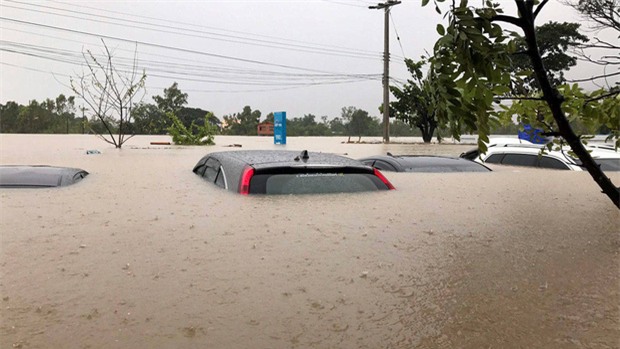 Nhiều chiếc ô tô thậm chí bị ngập gần hết, chỉ nhìn thấy một phần nhỏ nhô lên khỏi mặt nước.