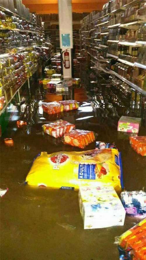 Thậm chí, hàng hóa tự động bị cuốn trôi theo dòng nước lũ.