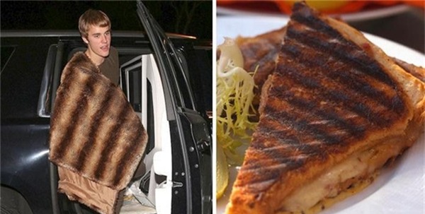 Justin Bieber dường như đang vác miếng bánh nướng to tướng trên người.