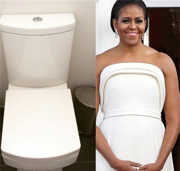 Những đường cắt cúp, tạo phom trên chiếc váy ôm của Michelle Obama trông không khác chiếc bồn cầu màu trắng tinh. Hình ảnh so sánh này khiến người xem khó nhịn cười được.