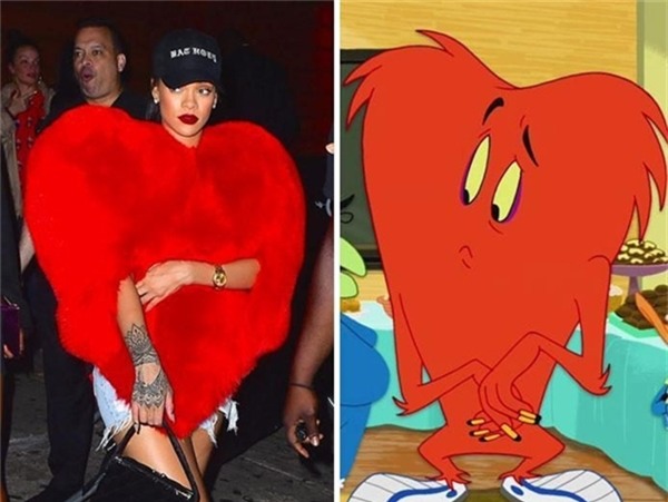 Áo khoác lông hình trái tim to tướng của Rihanna trông không khác nhân vật hoạt hình lạ mắt Gossamer.