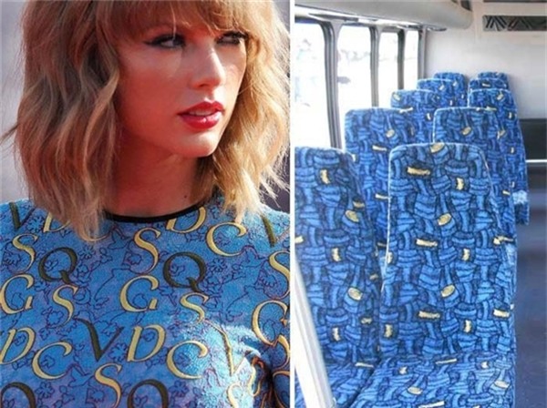 Thoạt nhìn, chắc chắn bạn sẽ khó nhận ra điểm khác biệt giữa chiếc áo của Taylor Swift và hàng ghế trên xe.