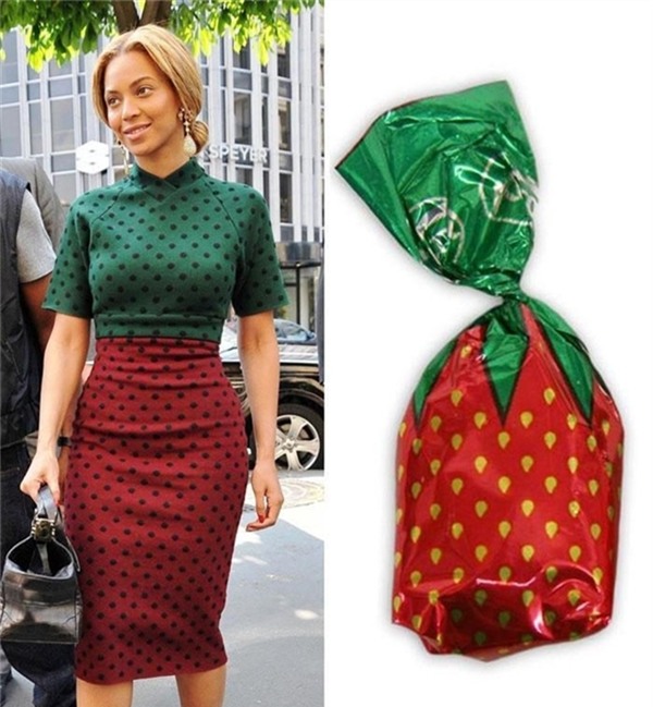 Viên kẹo dâu ngọt ngào mang tên Beyonce với sự trùng khớp từ áo, chân váy của cô với miếng giấy gói bên ngoài.