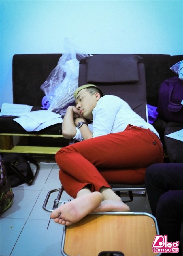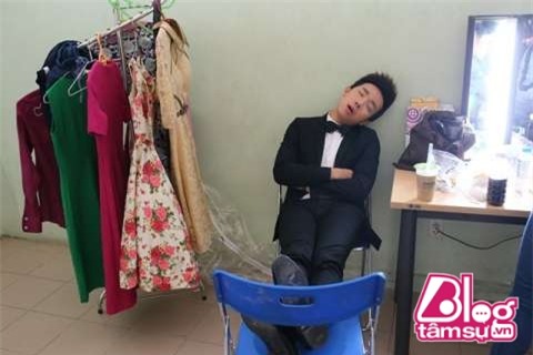 Thế nên nam danh hài luôn phải tranh thủ ngủ ngay tại hậu trường để kịp thời gian làm việc
