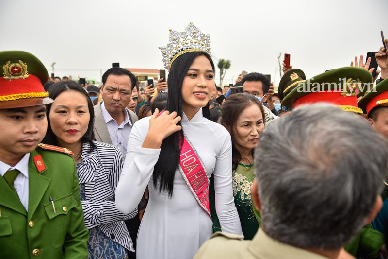 Bà con làng xóm diện áo dài đón Tân Hoa hậu Việt Nam Đỗ Thị Hà.
