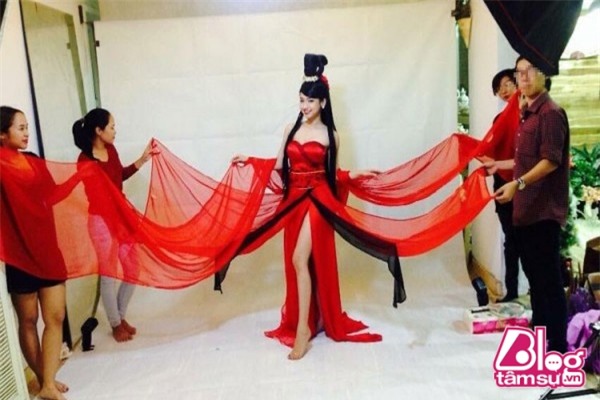 Khuôn ngực đẫy đà của Lâm Chi Khanh như muốn nhảy bật ra khỏi chiếc áo mỏng manh.