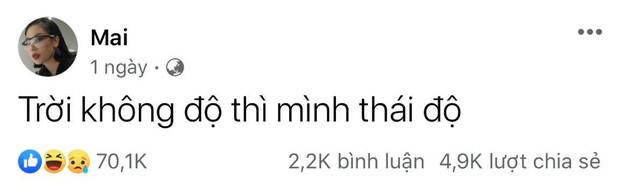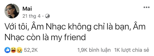 Sự thu hút của Mai Âm Nhạc có thể gói gọn trong status mới nhất của cô nàng: 7 chữ với hơn 70k react và gần 5k lượt share.