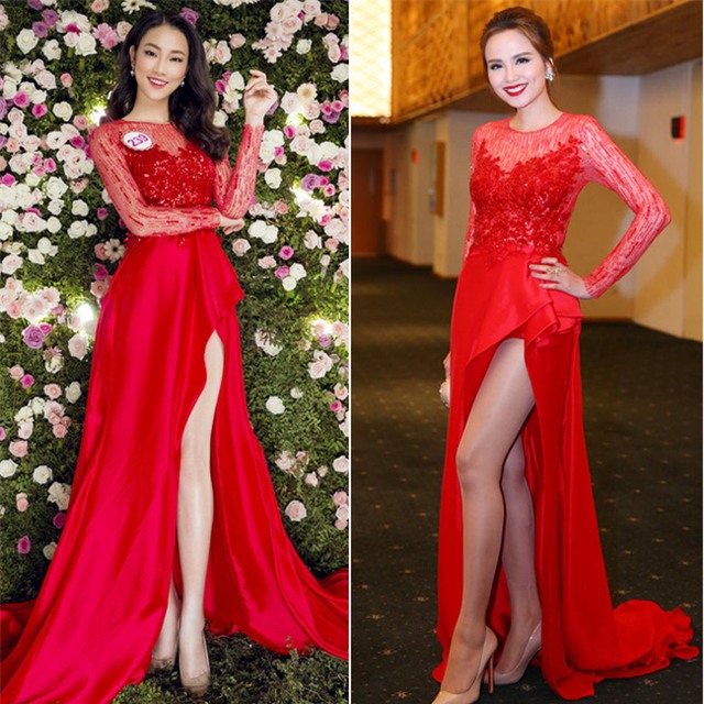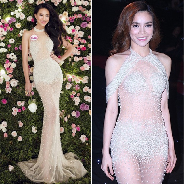 Chiếc đầm xuyên thấu mà thí sinh Nguyễn Huỳnh Kim Dung được diện thuộc dạng sexy bậc nhất trong suốt cuộc thi Hoa hậu Việt Nam 2016 này. Nó có rất nhiều điểm tương đồng với bộ cánh từng mang lại tai tiếng cho Hồ Ngọc Hà khi xuất hiện trên chương trình Siêu mẫu Việt Nam 2015. Chỉ có duy nhất chi tiết vai của 2 thiết kế là có khác biệt.