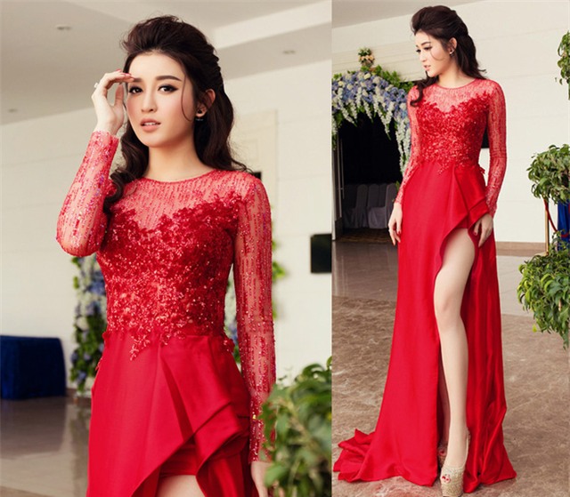 ... và cả Á hậu Huyền My. Có thể nhận xét rằng với chiếc đầm đỏ xuyên thấu này, ai cũng trở nên vô cùng rạng ngời và xinh đẹp.