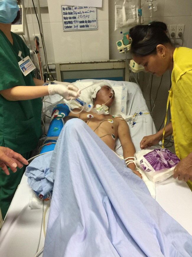 Đã 20 ngày trôi qua, anh Lợi vẫn chưa tỉnh lại, một phần não đã được đưa ra ngoài nuôi nhân tạo.