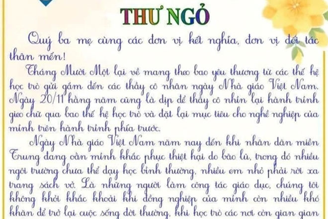 - Ngày 20/11 - ngày đặc biệt để nói lời cảm ơn cô. Cảm ơn cô vì đã dạy dỗ con bằng sự kiên nhẫn, yêu thương và tận tâm. Chúc cô luôn xinh đẹp, bình an và hạnh phúc trong hành trình gieo mầm trí tuệ và tình yêu thương.