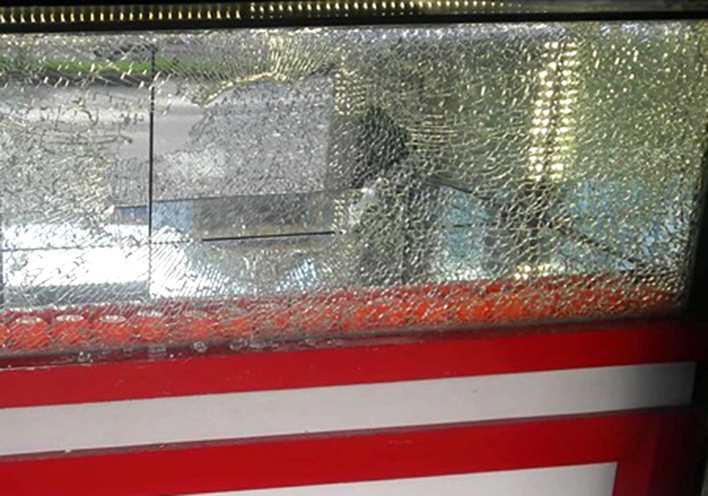 Chiếc tủ kính bị kẻ cướp đập vỡ.