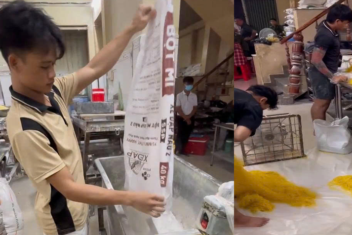 Các loại hóa chất này được ông Toàn đặt mua trực tiếp tại chợ Kim Biên hoặc thông qua các đầu mối giao hàng tận nơi. Sau đó, ông Toàn chỉ đạo nhân công tại cơ sở pha trộn các loại hóa chất như Borax (hàn the), Soda, dung dịch Silicate vào bột mì theo tỉ lệ nhất định để có thành phẩm phù hợp với khẩu vị người dùng.