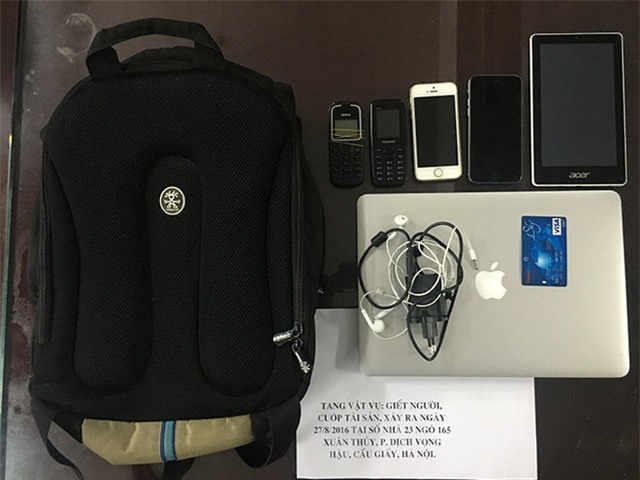 Quá trình khám nghiệm hiện trường cho thấy, nạn nhân bị mất 1 điện thoại di động nhãn hiệu iPhone 6S và 1 máy tính xách tay nhãn hiệu Macbook Air. Kết quả pháp y cho thấy trên người nạn nhân bị dao nhọn đâm nhiều nhát vào vùng bụng, ngực, tay; nguyên nhân dẫn đến tử vong do mất máu cấp.
