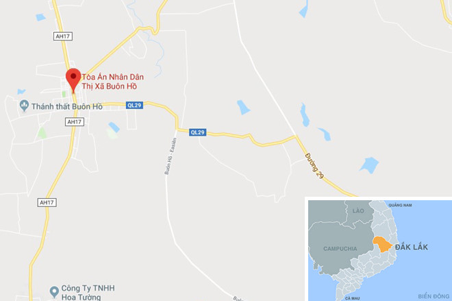 TAND thị xã Buôn Hồ, nơi xảy ra án mạng. Ảnh: Google Maps.