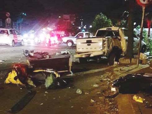 Công an xác định có 2 người tử vong và 5 người bị thương đang được điều trị tại các bệnh viện trên địa bàn TP.HCM sau vụ tai nạn xe bán tải tông vào dòng xe máy đang chờ đèn đỏ.