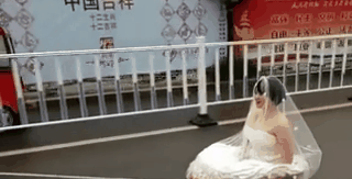 Dù không được đưa về nhà chồng trên xe hoa sang trọng như bao người con gái khác, cô dâu này không hề tỏ ra buồn bã, trái lại còn tỏ ra hạnh phúc với lễ rước dâu "khác người" của mình khi được quay phim.