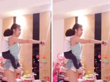2 mẹ con cùng nhau tập Gym vô cùng đáng yêu