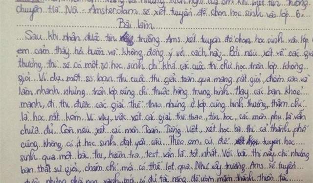 Khi nhận câu hỏi trong đề văn: “Hãy ghi lại tâm trạng và những kiến nghị của em khi biết tin trường chuyên Hà Nội – Amsterdam sẽ xét tuyển để chọn học sinh vào lớp 6”, một nhóm học sinh ở Hà Nội đã trả lời rất chân thành.