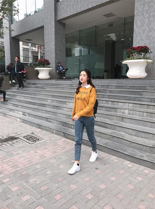 Cách đây ít giờ, Hoa hậu Việt Nam gây chú ý khi đăng tải hình ảnh đi học tại trường Đại học Ngoại thương. Khác với vẻ lộng lẫy khi dự sự kiện, cô sinh viên năm 3 trẻ trung đúng độ tuổi với quần jeans, giày thể thao, áo sweater kết hợp với sơ mi trắng bên trong.