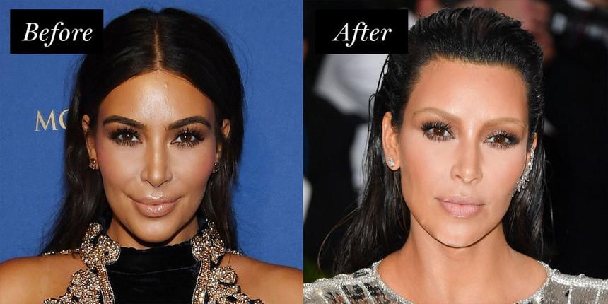 Kim Kardashian hy sinh cặp lông mày dày và thay bằng kiểu màu xám nhợt nhạt, thiếu sức sống.