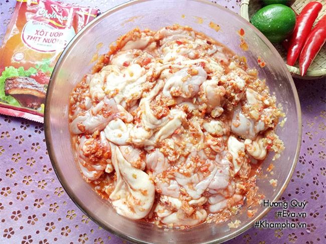 Bước 4: Thêm gia vị ướp cùng chút hạt tiêu, mì chính, ướp lòng non, khấu đuôi khoảng 1h đồng hồ.