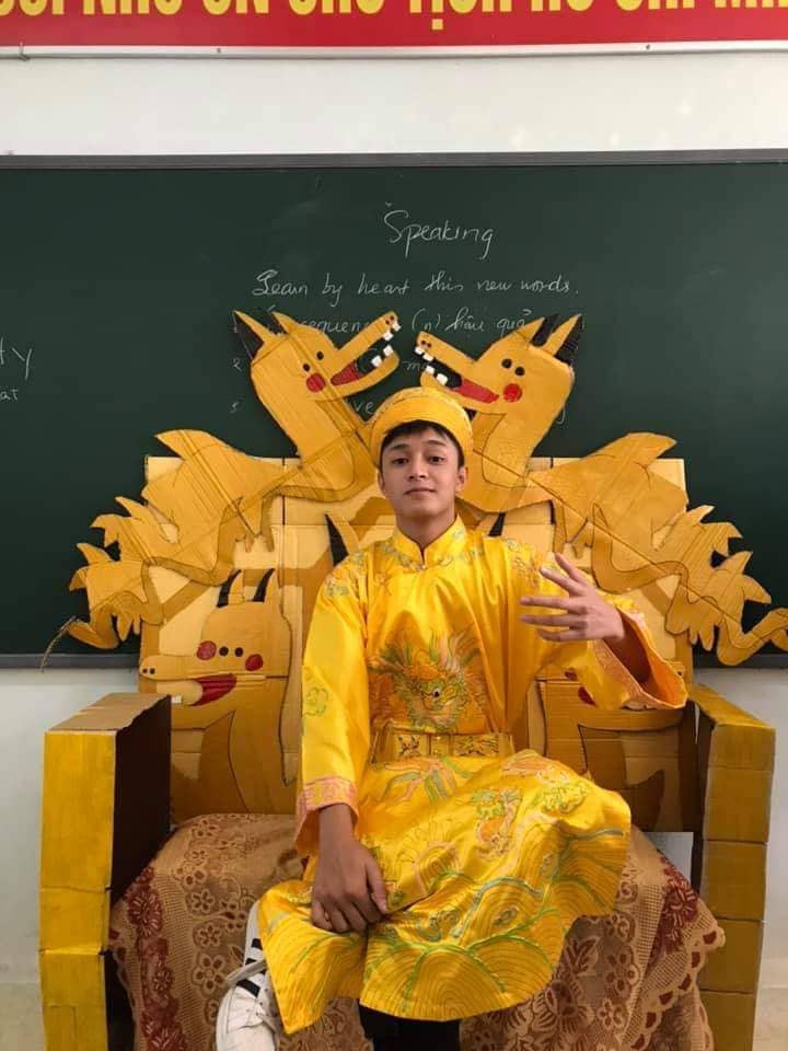 Ngoài những bình luận khen ngợi tính sáng tạo của lớp thì nhan sắc của nam sinh đóng vai Hoàng thượng cũng thực sự khiến dân tình chao đảo. Sở hữu nét đẹp hết sức điện ảnh, ai cũng khuyên cậu bạn đi làm diễn viên. Danh tính của cậu cũng nhanh chóng được tìm ra, đó là Huy Giang, học sinh lớp chuyên Sinh 16 - 19, cũng ở trường Chuyên Võ Nguyên Giáp luôn.