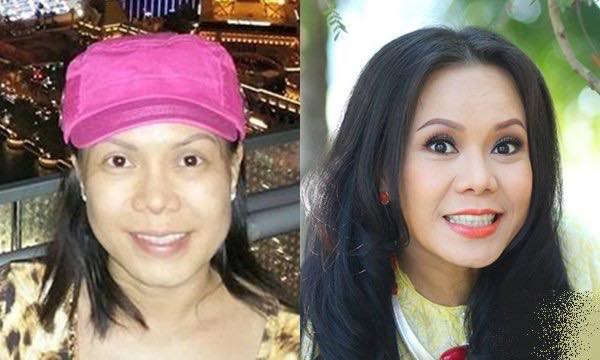 Danh hài như giá thêm cả chục tuổi khi lột bỏ lớp trang điểm, đôi mắt sụp mí, lộ nhiều nếp nhăn và đường nét nhạt nhòa.